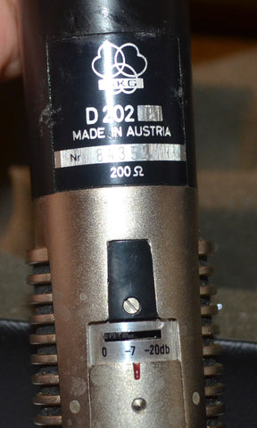 This Akg D202E1 dynamic mic came to us from a private studio that was rarely used. no dents, no dings, no scratches.....An excellent microphone for many signal sources. Best sounding example of this mic I have heard.