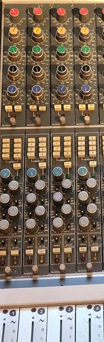 Where to begin? Killer Vintage 5300 Series Neve Mixer. All the input/eq modules and all the line/buss amp modules are discrete . 26 discrete 33129 input modules in place. The aux send modules have some ic amps. NOW< HERE"S SOMETHING: WE WILL ENTERTAIN OFFERS FOR THIS LOVELY DESK SHORTLOADED...YOU CAN BUY IT WITH 12 , 16, 20, or ANY other reasonable number of channels in place!! We are happy to offer it with 12 channels @ 67,500...with 16 channels @ 79500. or with 20 channels @ 91k ...The frame has space for 31 input modules ( I know its odd, but I dont know why....) there are at least 10 other line inputs available with group assigns. 8 buss outputs. Direct Channel outputs at the patch bay. Four seperate aux sends ( each switches pre/post) per channel. tt Patch bay on umbillical cords. Combination of 3415/3416 and 34121 line amps. TINY!! the desk is under 6 feet wide! Has a nice stock stand with wheels. Located in the Bay Area, we can help arrange shipping if you like. Drop Dead Gorgeous console in every respect! The frame was comepletely gone through by a well regarded Neve tech immediately before the console was decommisioned ( 6 months ago), and the inpout modules have just been gone through by yet another well known tech and are working perfectly. It should All be working well ...... Original P&g 1520 faders. The Equalizer on the 33129 is identical to that of the 33114, very extensive 3 band plus high/lo filters. The preamp sounds fantastic . bitree tt patchbays. Power supplies are included. This one will EASILY fit into your spare bedroom!! Although we believe them to be realistic and conservative, All shipping quotes are only an estimate, and buyers agree to pay ACTUAL ahipping/crating fees. Has paperwork which is extensive. Feel free to call dan alexander audio with any questions.